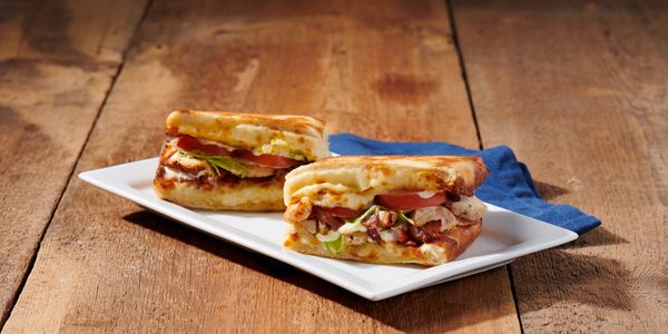 Grilled chicken, bacon, lettuce, tomato, mozzarella, vinaigrette & mayo. Served with fries. 14