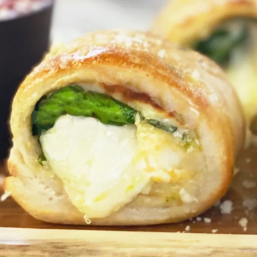 Provolone, white American cheese, ricotta and Romano cheese with spinach. 9