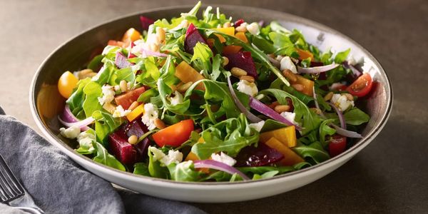 Roasted beets, goat cheese, red onion, tomato, toasted pine nuts with a balsamic vinaigrette. 13
