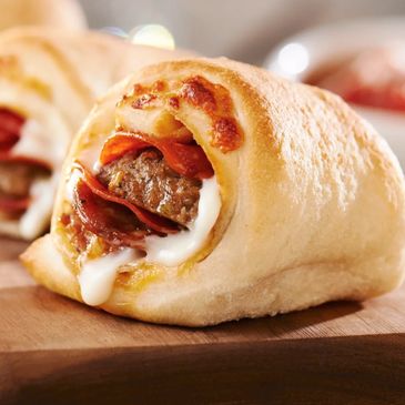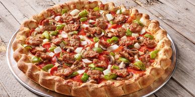 Traditional and old world pepperoni, sausage, sweet Sicilian sauce, italian spices, mozzarella/provolone cheese blend.