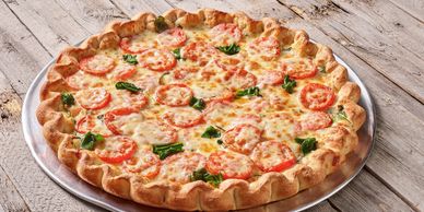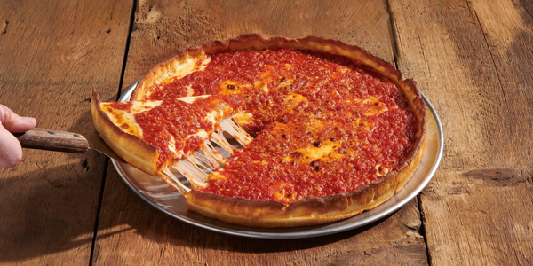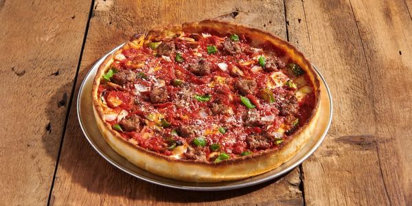 Inspired by Chicago’s iconic pizza style, this unique creation begins with a buttery, crisp crust. In a bold twist, we layer the Wisconsin cheese directly onto the crust, followed by your favorite toppings. Then we ladle on our famous Sicilian-Style Pomarola sauce—true to Chicago tradition, the sauce comes on top.
