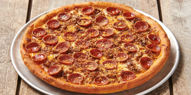 Red sauce, provolone blend, crumbled sausage, thick cut pepperoni, topped with Romano cheese