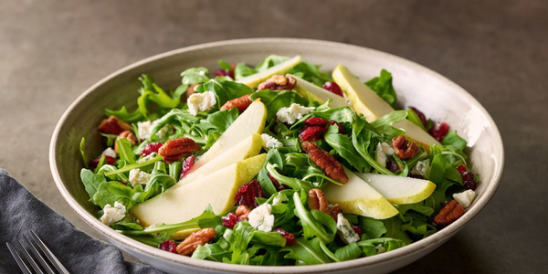 Pears, arugula, dried cranberries, crumbled Gorgonzola, glazed pecans, served with poppyseed dressing. 12